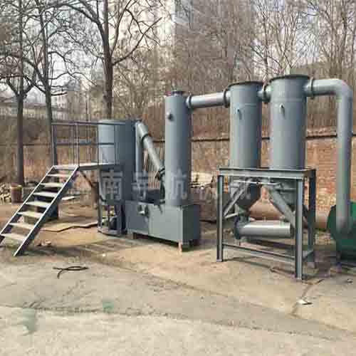 6. 炭化時(shí)產(chǎn)生的煙氣首先進(jìn)入干式除塵器進(jìn)行分離,炭粉收集,煙氣進(jìn)入凈化系統(tǒng)循環(huán)使用;